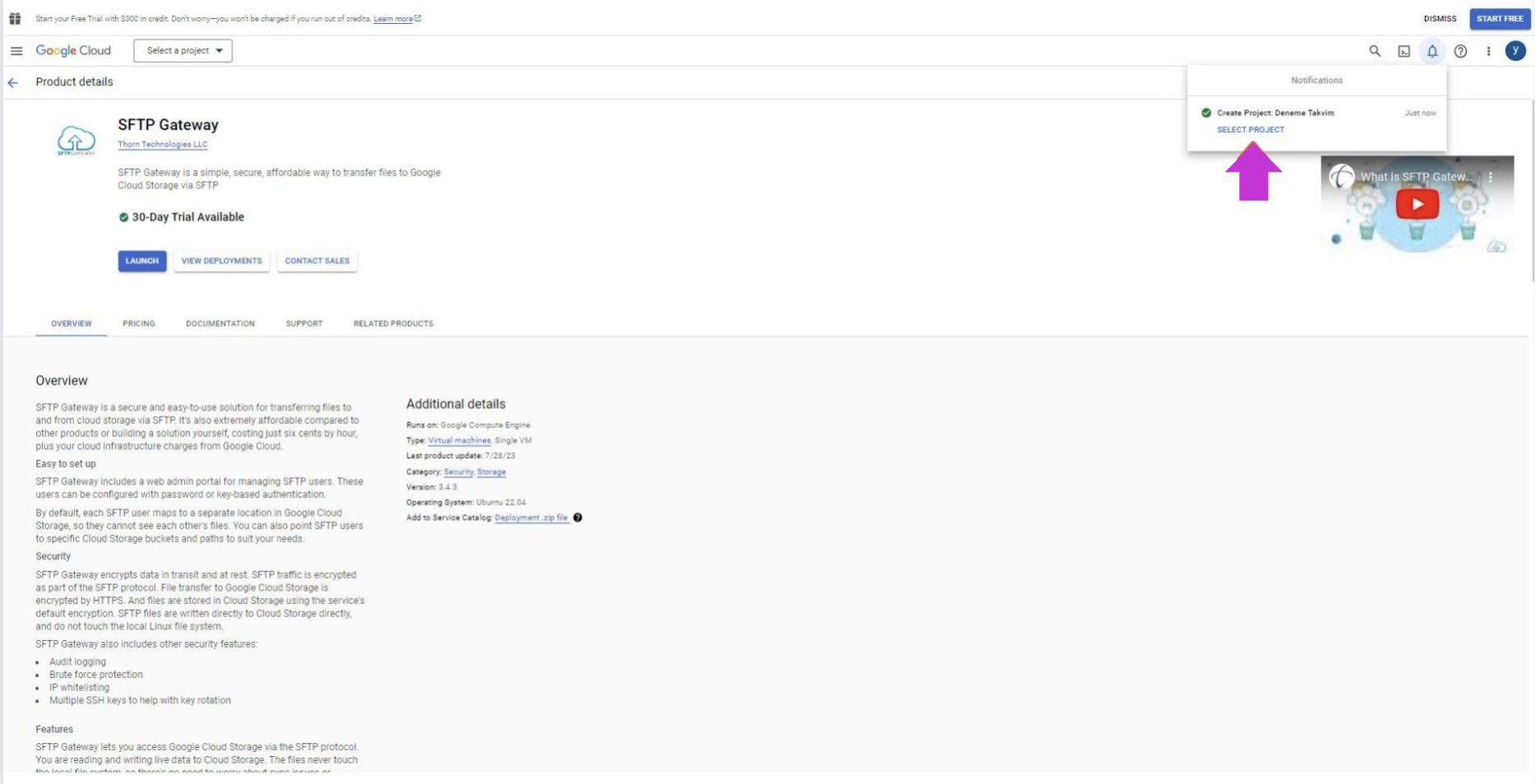 Google Cloud Console'a Giriş Yapın: İlk adım olarak, Gmail hesabınızla Google Cloud Console'a giriş yapın. Bu adrese https://cloud.google.com/ gidin ve sağ üst köşedeki "Console" butonuna tıklayın, ardından "Giriş Yap" düğmesini kullanarak oturum açın. Ardından aşağıdaki görsellerdeki işlemleri gerçekleştirin.